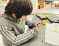 2021年12月8日 15時30分3年生は理科の学習で、電気について学習をしています。今日は、ショート回路を作って、硬貨が電気を通すか通さないか実験をしました。