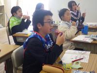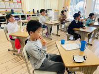 今日は、歯みがき巡回指導がありました。年に一度、歯科衛生士さんが来校され、歯の健康についてのお話や、歯みがきの仕方を教えてくださいます。