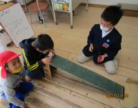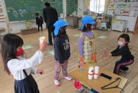 2021年11月30日 16時05分 今日は、中島こども園の園児たちを招待し、1年生は「秋のおもちゃパーティー」、2年生は「動くおもちゃパーティー」を開催しました。