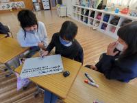 いじめについて「一人でできること」「二人以上でできること」「大人の人にしてほしいこと」「相談しやすい人って?」の4つのテーマでプレゼン発表を聞きました。しかし、いじめに対して「自分たちでも解決したい!」という子どもたちの思いから、自分たちにできることを各学校で考えました。