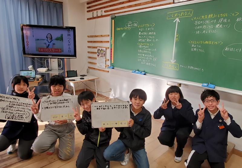 2021年11月18日 16時25分 今日の5・6校時に「えひめ いじめSTOPデイ!」がありました。これは県内一斉ライブ配信授業で、初の試みとなる事業です。