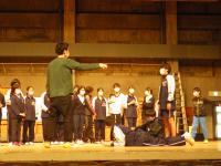 今日はチームに分かれてお話づくりをしました。「困ったこと→解決」の流れでそれぞれのチームが演技をしていきます。プロの演出家の方々にご指導を受けながら、どのように表現すれば伝わるか、チームでよく話し合いました。どのチームも短時間で楽しい演技をすることができました。