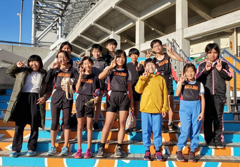 初めて陸上総体に参加する子どもも多く、会場の広さや人の多さに緊張気味の子どもたちでしたが、アップや応援をしているうちに少しずつ緊張もほぐれているようでした。