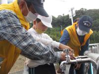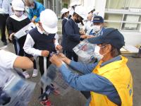1~3年生と4~6年生の2班に分かれて実施しました。実際に、応急給水栓(通称 のめるん)を使ったり、給水車から水を汲む体験をしたりしました。