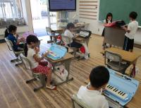 音楽の時間はもちろん、朝の会や終わりの会でも練習をしています。