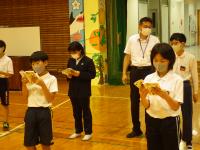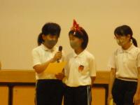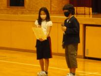 毎月10日はいじめ0の日です。明日がお休みのため、今日全校朝の会を行いました。今回の司会進行は4年生です。