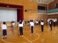 2021年7月19日 15時38分 5・6校時に、小浜の保存会の方々にお世話になって、道具踊りの練習がありました。