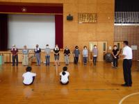 3つのチームに分かれて、詳しく振付を教えてもらっています。保存会の方々の動きをよく見て、必死に覚えようとする子どもたちです。