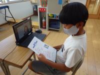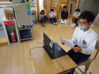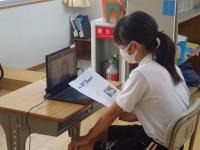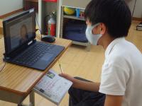 2021年9月9日 15時00分 今日から、5・6年生を対象にした英会話レッスンが始まりました。月に1回実施予定で、オンラインで外部の先生と英会話の練習をします。今日は初めてということで、まず初めに全体で挨拶をしました。