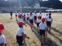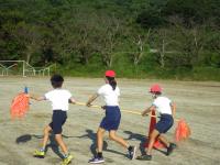 2021年9月24日 16時00分 今日は朝の時間に、外で全校種目の練習をしました。今年度の全校種目は、しゃがんだりまたいだりはせず、くじで出た色のコーンを3人チームで協力して回るという競技です。実際にやってみると、子どもたちもやり方をイメージできたようです。