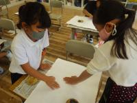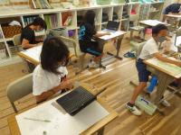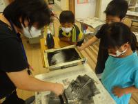 2年生は、版画に挑戦です。鳥やトンボの生き物を題材にしている子どもがいました。うまく版に刷ることができたかな。完成が待ち遠しいです。
