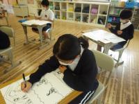 6年生は、小浜地区にある八幡神社を写生しました。今日までに描く練習をしていました。練習の成果を生かして描くことはできたかな。細かいところまでよく見て、描くことができていました。