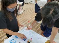 2021年10月1日 15時20分 6年生は運動会の「親子リレー」で着るためのTシャツづくりをしました。