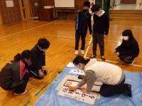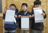 2022年1月13日 15時00分 今日は校内書き初め大会がありました。作品作りは、冬休みの宿題にもなっており、今日がその本番の日でした。低学年は硬筆、中・高学年は毛筆で作品を仕上げました。また、今年は外部講師をお呼びして、運筆の仕方や文字のバランスの取り方など、細かなところまで指導をしていただきました。満足のいく作品ができたかな?