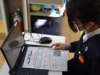 2022年1月27日 15時30分 今日は月に一度の英会話レッスンの日でした。毎月、外部講師の先生とオンライン会議システムを使って、英会話の練習を行っています。今日は、「身長はどのくらい?」「アレルギーはある?」など、自己紹介の応用編です。受け答えの仕方は難しいですが、先生お手製の「英会話ワークシート」があるので、子どもたちも安心して取り組むことができているようです。