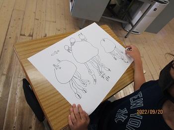 2022年9月20日 15時00分9月20日(火)の3~6時間目の時間に5・6年生がそれぞれのテーマで絵を描きました。